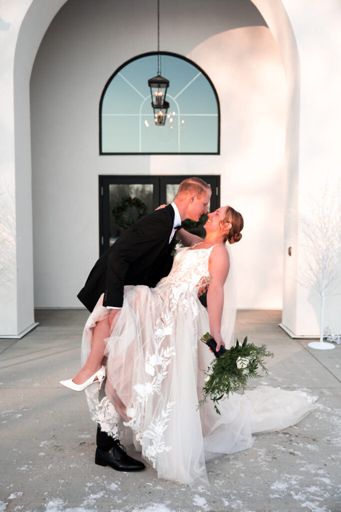 Sparrow Lane Weddings and Events offered a perfect, elegant winter setting. With grand interiors and beautiful outdoor spaces dusted in snow, it created an ethereal atmosphere for Jessica and Quinten’s ceremony and portraits.